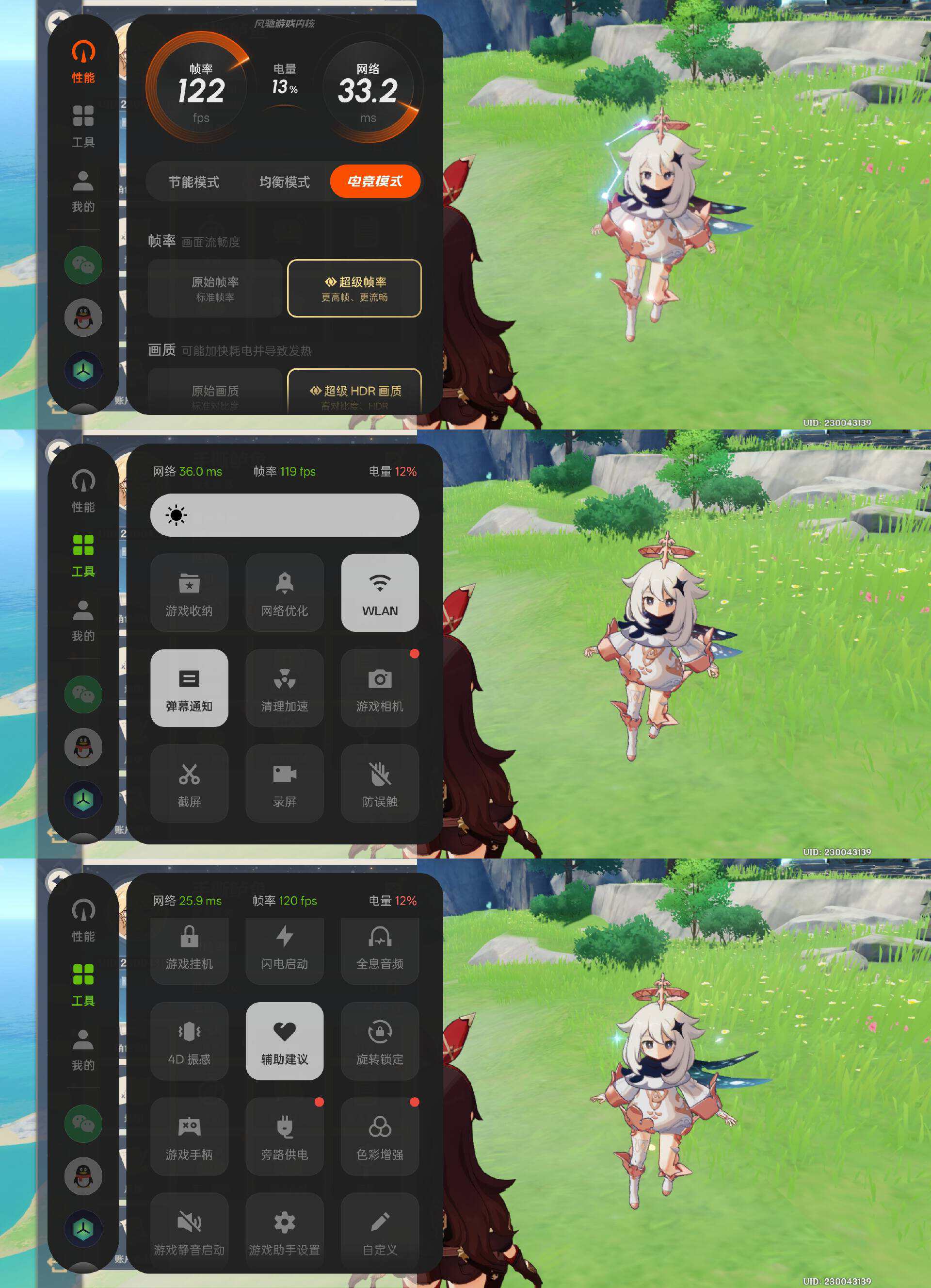 一加13T继续和《原神》深度合作,不仅可以实现《原神》原生级120帧+1.5K画质双开的游戏体验,游戏助手还内置了「AI实验室」功能,可以提供自动拾物、自动解控和跑动锁定功能,从而大幅减少游戏中机械化的手动操作。而且一加13T支持旁路充电,可以直接向游戏供电,减少设备发热。此外一加13T在游戏工具内还添加了游戏相机功能,可以实现普通截屏、实况截屏、15秒录屏和一键回录等功能,可以很便捷的和别人分享自己胜利的喜悦。