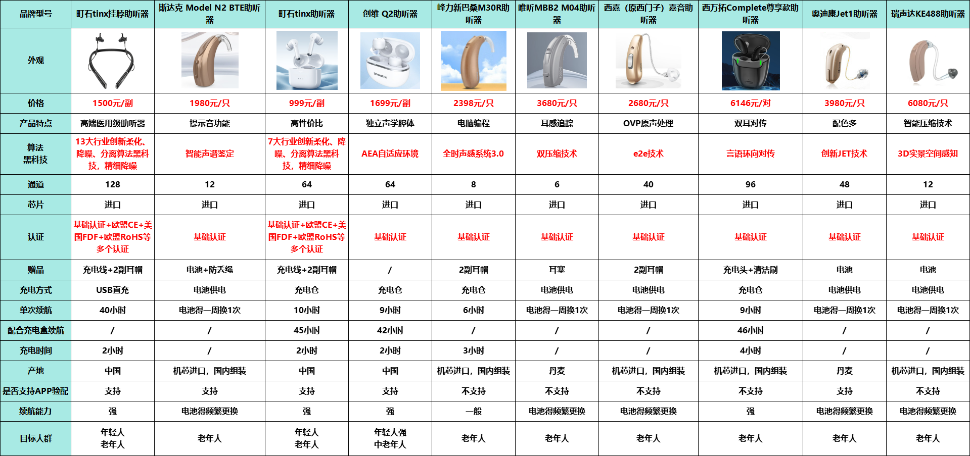 表格里的数据展示了我实际测试的几款助听器的表现,每款产品的特点一目了然。你会发现,选择一个合适的助听器其实并没有想象中那么复杂。