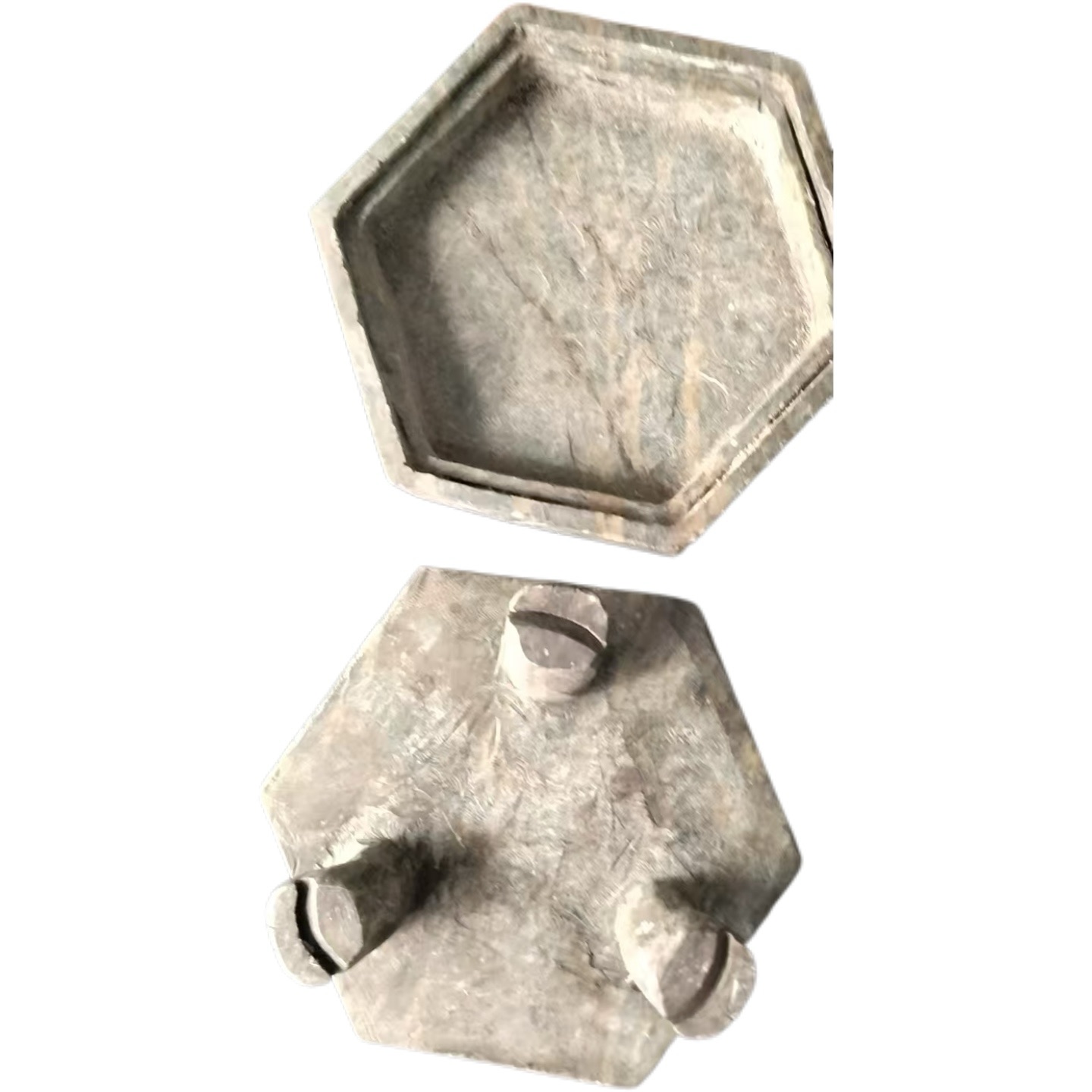 (二)三足设计的精妙平衡砚台底部的三足设计,堪称巧思。三足均匀分布,支撑起整个砚台,使其稳稳地立于案头,既保证了放置的稳定性,又让砚台底部与桌面形成空隙,利于空气流通,可在一定程度上防止砚台因潮湿而受损。从视觉上看,三足让砚台摆脱了平面的单调,增添了立体的层次感,宛如一座微型的石制鼎器,暗含 “鼎立” 之意,象征着文人精神的独立与坚守,也凸显了砚台在文房中的核心地位。