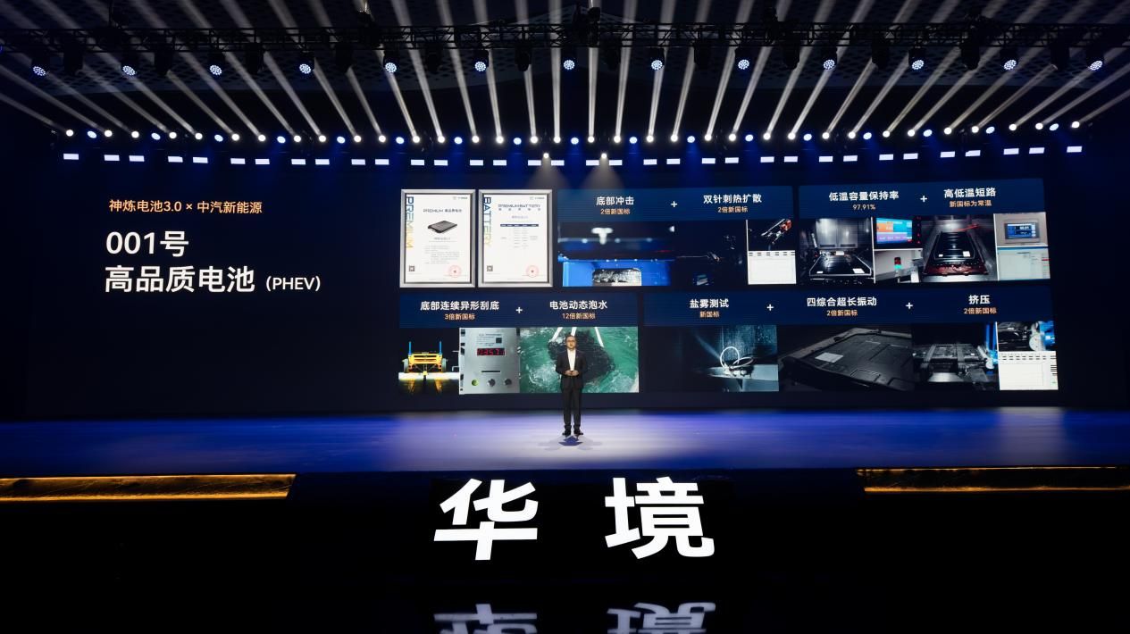 三电安全同样靠谱,华境S神炼电池3.0搭载宁德时代超级增·混电芯,打造系统级五“零”安全,累计766亿公里零自燃。电池经过三大极限进化,采用PPB航空级制造标准,裸电芯硬抗1500J底部撞击(10倍新国标能量)也不起火不爆炸,还通过四大超国标串行测试,拿到中汽新能源001号(PHEV)高品质电池认证。