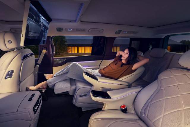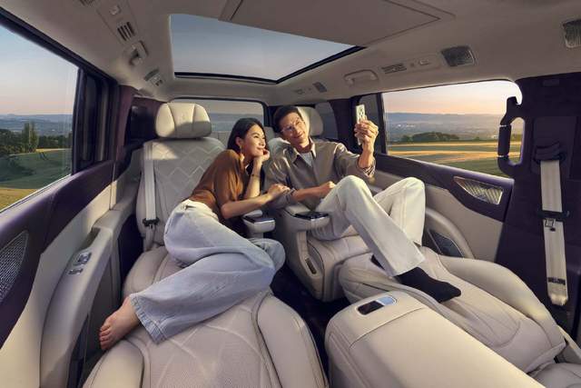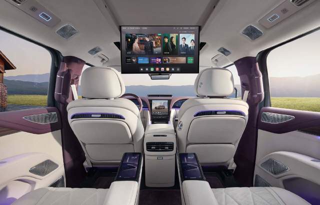 新车搭载丹拿铂金证据系列Hi-End级32扬声器系统,功放功率达2040W,采用7.1.6全景声音响布局。21.4英寸电动折叠吸顶屏支持四屏联动,带来沉浸式影音体验。五温区独立空调、智能冰箱、自然节气主题香氛等配置,从触觉、体感到环境营造,全方位缔造鼎级舒享体验。