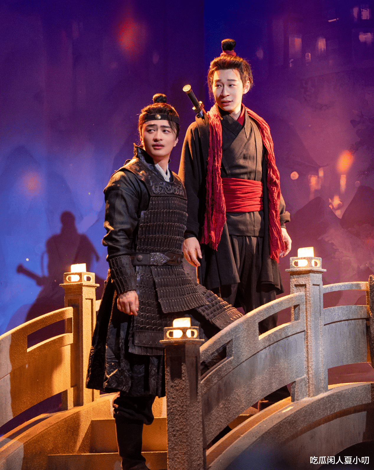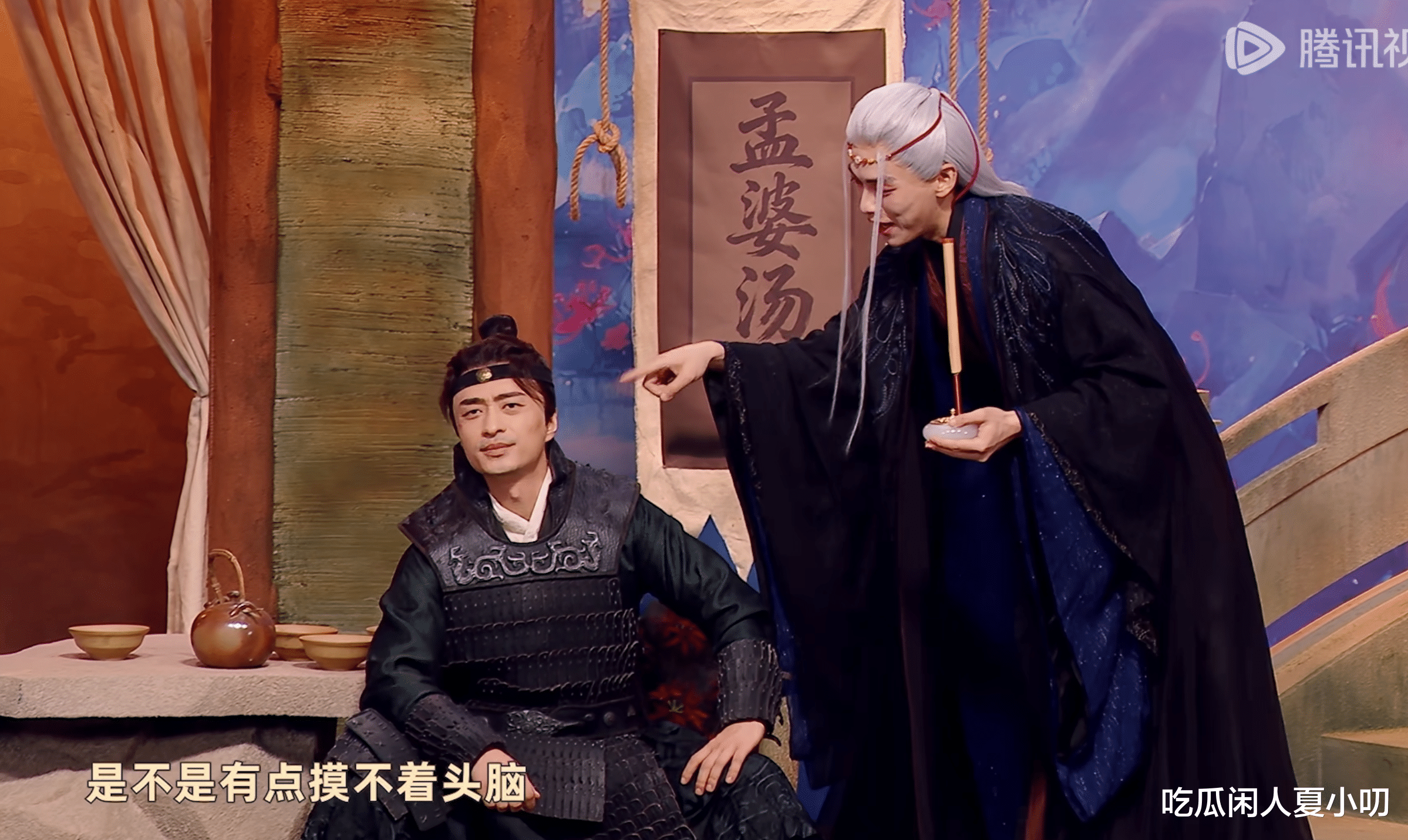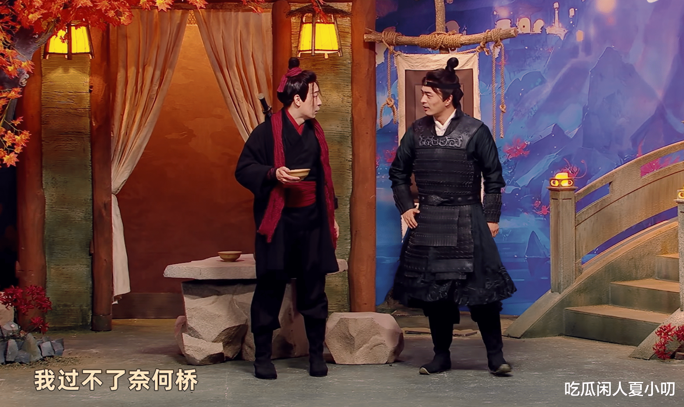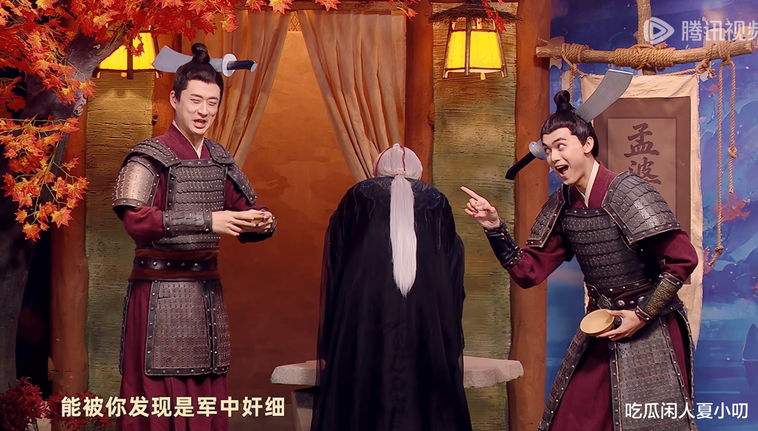这里,原本应该是松天硕先说“不会碰上秦王吧”,但因为太入戏忘词了,刘旸又觉得这是小队的最后一个作品,必须要提一下“四士同堂”,所以,他说了松天硕的词。