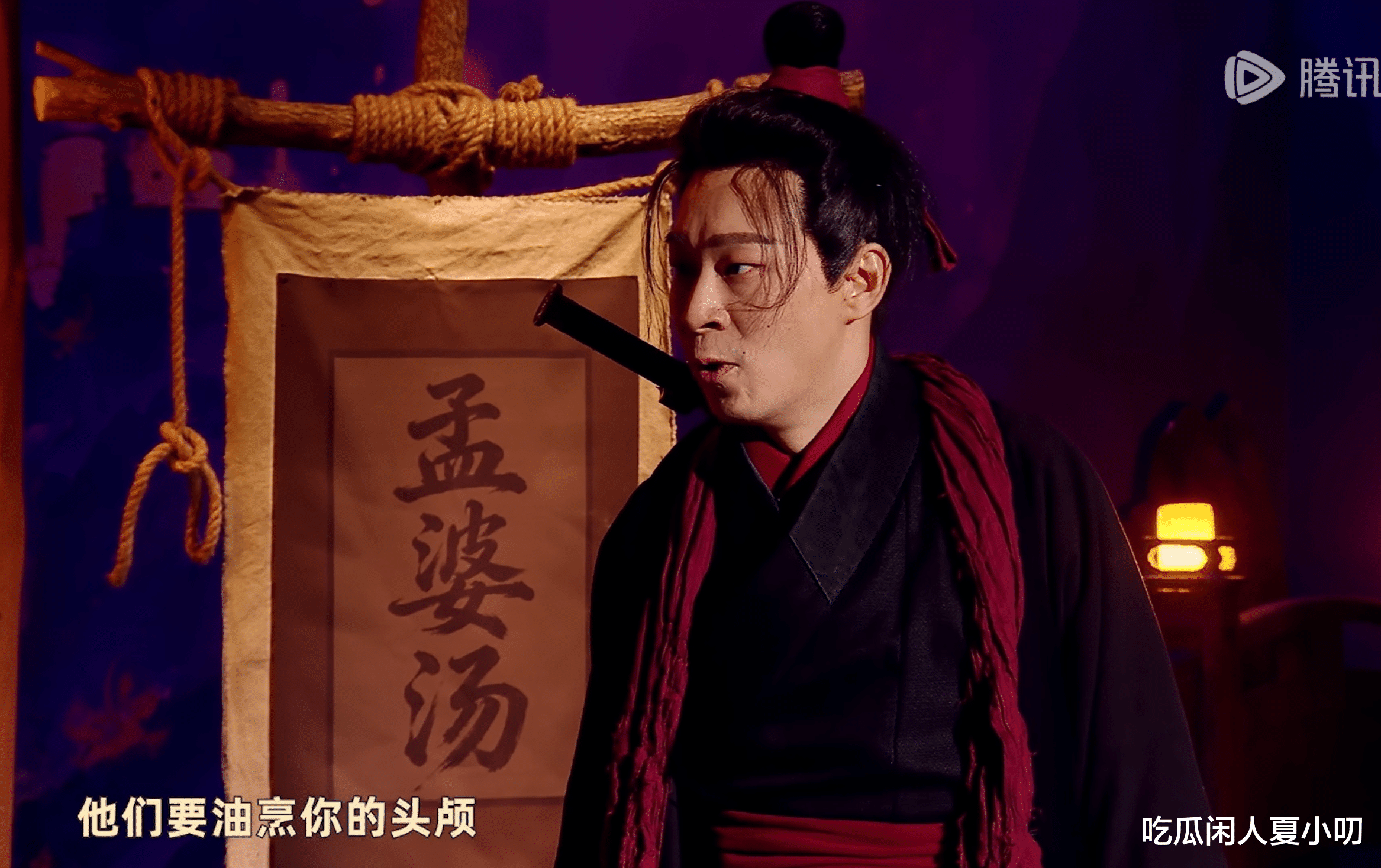 第一,说明故事背景,把孟婆(李治良)是男人铺一下,刘旸再上来的时候,性别这个点就可以再往上翻一番。