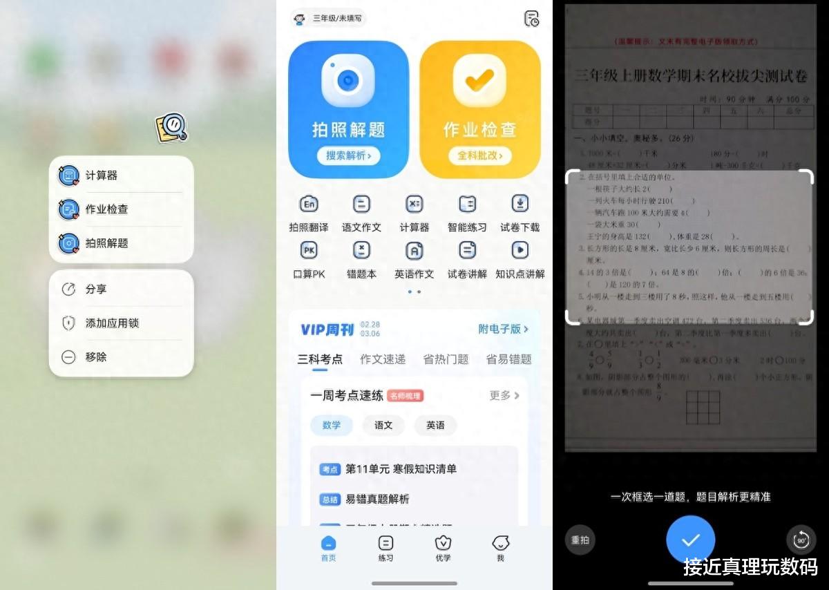 有时候放学后一道题要辅导好几遍,血压边蹭蹭上涨边在心里默念“心平气和”。这两天刚开学我让孩子自己用鸿蒙版小猿搜题,直接在桌面长按App图标,就能通过“应用快捷方式”一步直达搜题界面,题目答案解析都给你讲得明明白白,而且它还可以直接调用系统自带相机,题目识别够精准,这下我的血压平稳多了。