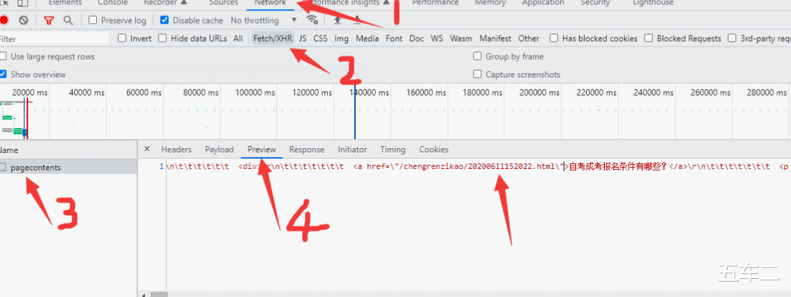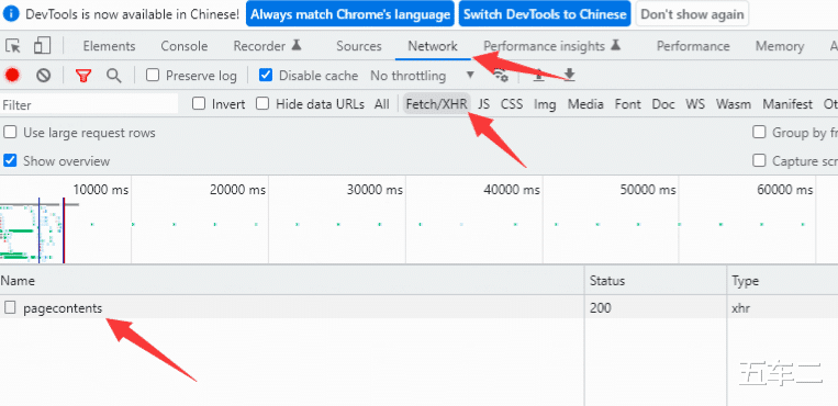 打开浏览器F12开发工具,预览一下Ajax获取的内容。
