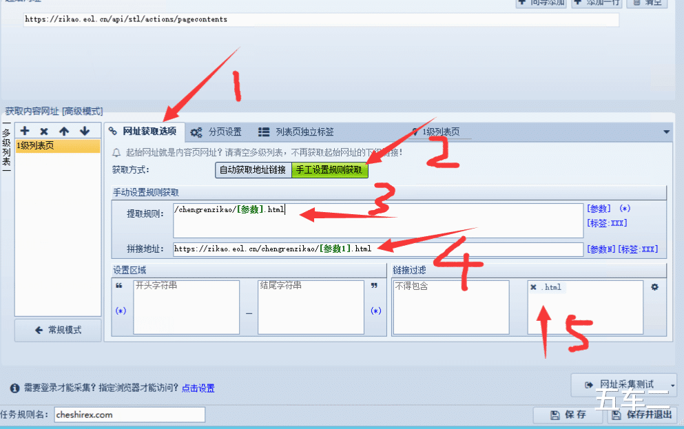 为了筛选出我们需要的内容,我们设置一下网址获取选项。