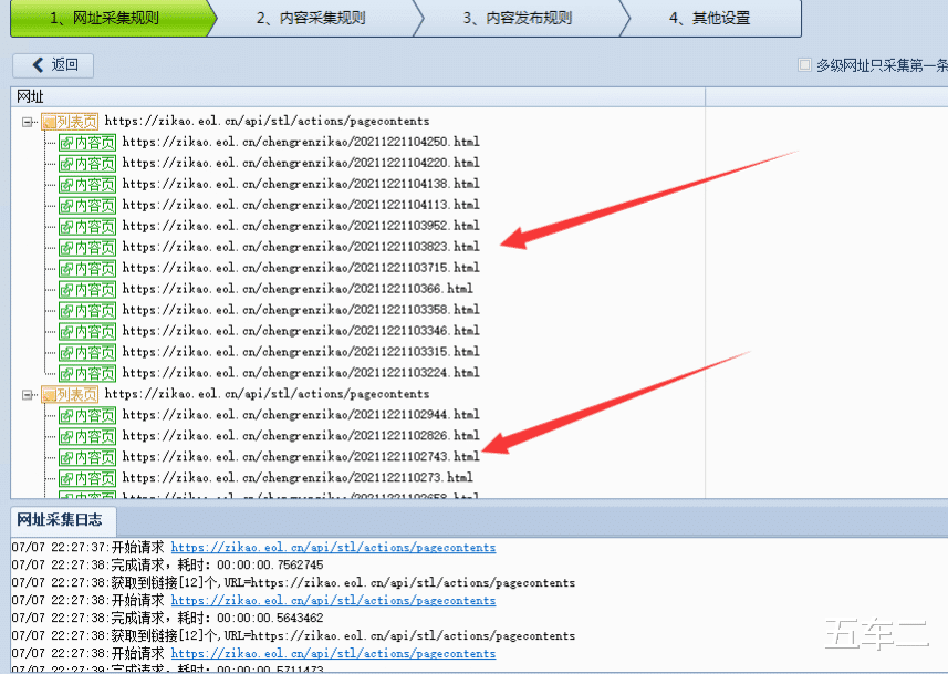 我们测试一下网址采集。