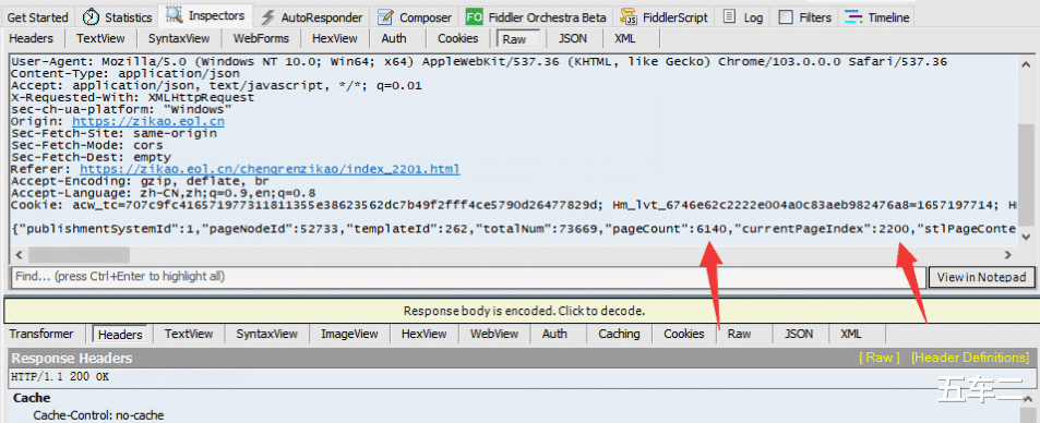 在Fiddler右侧会显示这个请求地址的相关详细信息。