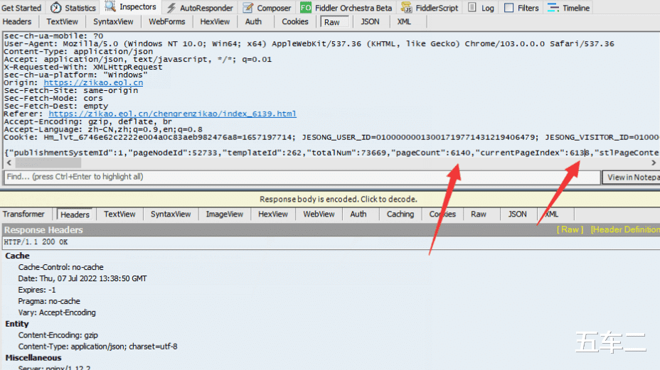 可以看到有我们请求的页码相关内容。