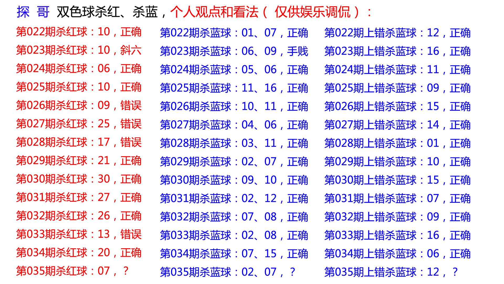 第035期上期错误杀蓝球:12;