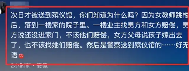 魏老师去世后,她的遗体处理过程也引发关注。由于双方家庭在责任归属上的推诿,她的遗体一度面临“无人认领”的窘境。