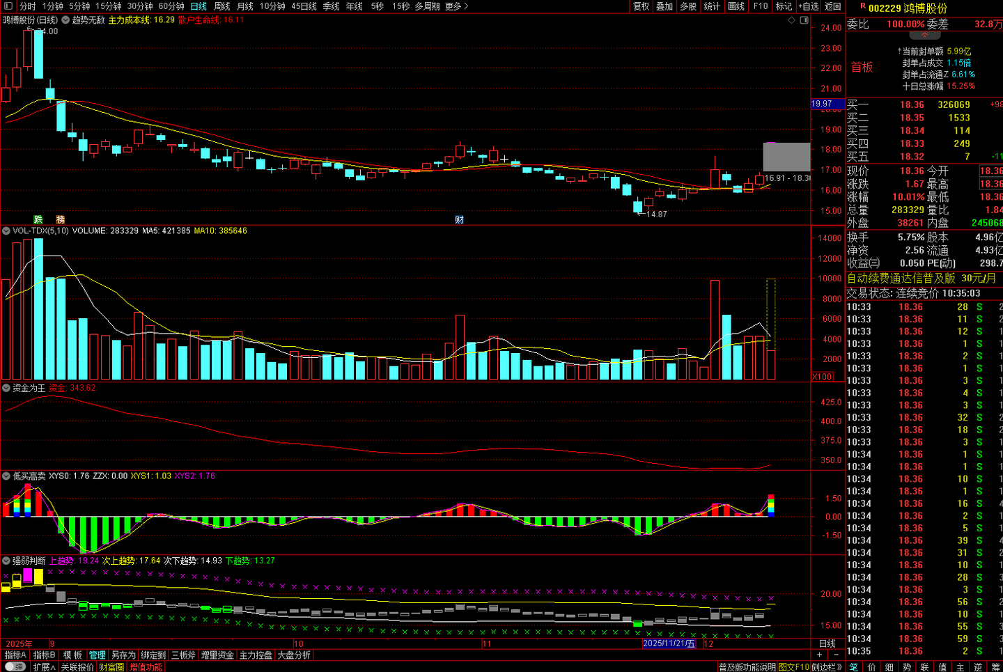 技术分析:鸿博股份昨日小阳线上涨2.20%,股价处于下行趋势,但向下动能有所减弱。短期均线组合纠缠走平KDJ连续多日在50附近走平。