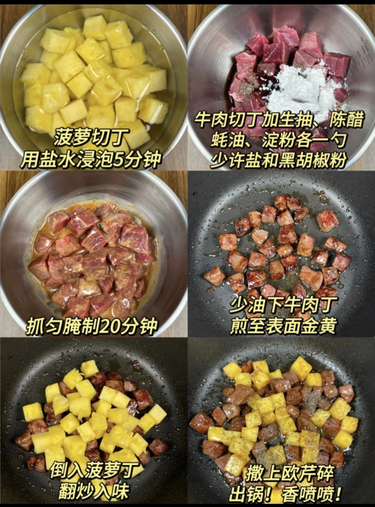 每当舌尖触碰到那酸甜与咸鲜交织的瞬间,记忆的味蕾便会被瞬间唤醒。那是一种独特的味觉体验,仿佛夏日的海风与冬日的暖阳在口腔中不期而遇,带来一场无与伦比的味蕾狂欢。这,便是菠萝黑椒牛肉粒的魅力所在。它不仅仅是一道菜,更像是一场精心编排的舞蹈,菠萝的酸甜与牛肉的醇厚,在黑胡椒的激情伴奏下,演绎出一曲动人的美食交响。