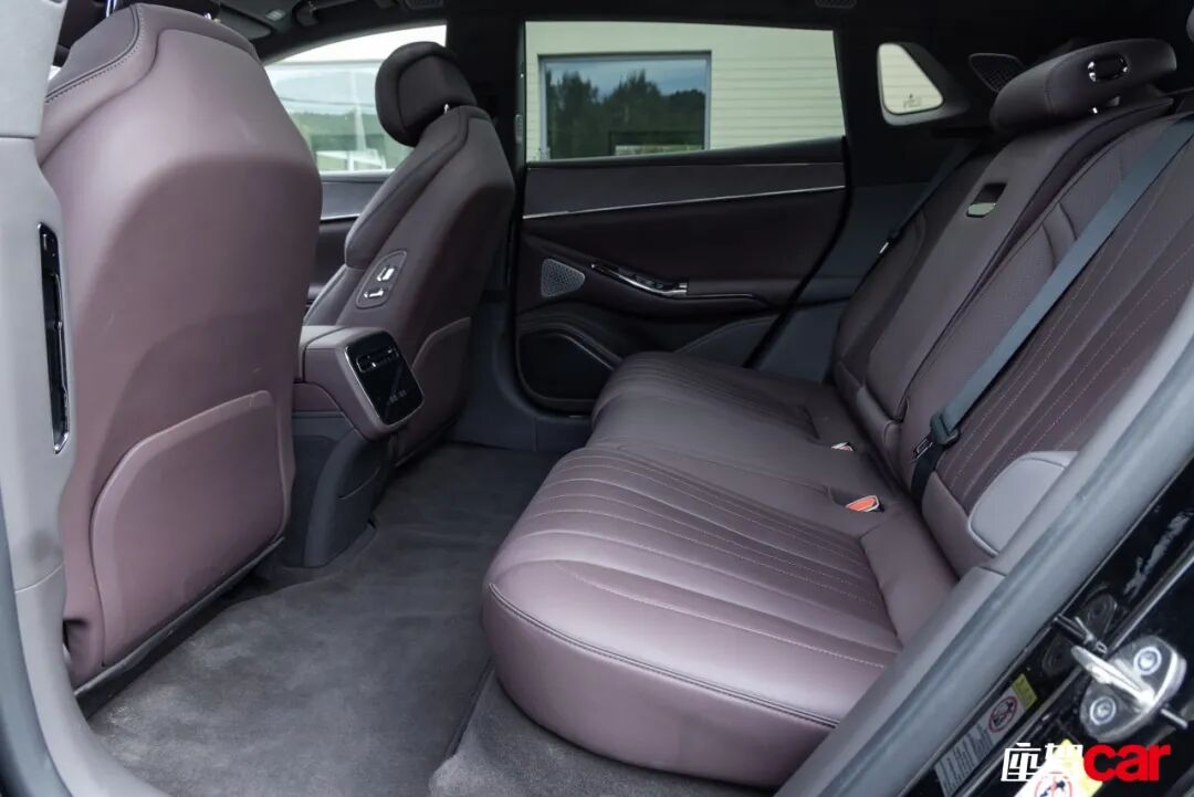 对于后排乘客来说,腾势Z9GT同样友好度满分,并未因为其猎装轿跑车的定位而有所怠慢。首先,超过3.1米的轴距让乘客可以有充足的腿部空间,有效弥补不足1.5米的车高可能带来的头部压抑感。其次,后排座椅同样可以通过门板上的物理按键调节靠背角度和腿托,特别是腿托的象鼻式延伸策略,能够很舒适地支撑大腿,配合可大幅倾斜的靠背,长途旅行时坐在这里会无比惬意。最后,腾势Z9GT为后排乘客提供了丰富的配置,除了前面提到的座椅加热/通风/按摩和冷暖箱外,还有副驾驶“老板键”、独立的后天窗、两个柔光化妆镜、大小USB接口各一个以及220伏三相电源插座,配置水平堪比主打行政级的三厢轿车。唯一的遗憾是,后排冷暖箱的存在压缩了后备厢的空间灵活性,即便后排两个座椅靠背能够实现电动折叠,中央凸出的冷暖箱还是会限制一些大件物品的装载,这也算是“有得必有失”。
