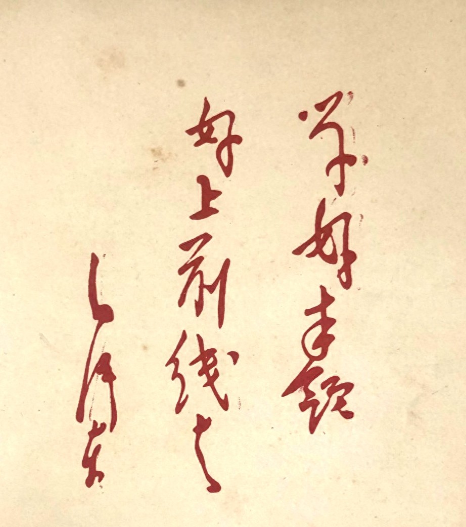 我们平时提到的“毛体”,通常指的是毛主席的书法,尤其是他的草书,更准确地说是他的行草书。毛主席的书法独具特色,给人留下深刻的印象。今天,我们就来欣赏他的一幅题字作品——“学好本领好上前线”。虽然只有短短九个字,但每一个字都写得非常精彩,不知道你能否全部认出呢?如果能认出来,欢迎私信告诉我,我将不胜感激!