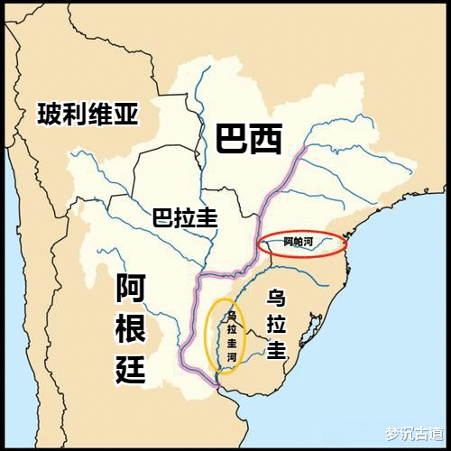 从地图上看,巴拉圭和阿根廷的边境线也在河上,这个不敢确定,请知道的友友补充。