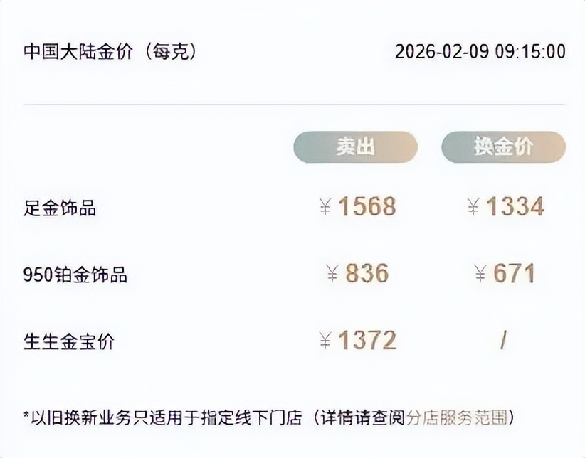 国内各品牌金饰克价水涨船高,突破1560元。9日,老庙黄金足金饰品价格为1566元/克;周大福饰品、工艺品类足金价格为1542元/克;周生生足金饰品价格为1568元/克;潮宏基足金(首饰摆件)价格为1542元/克;菜百足金999饰品价格为1530元/克。