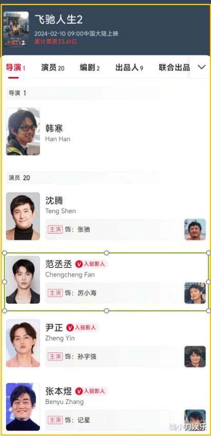 《飞驰人生2》,累计票房33.61亿,范丞丞居然是2番,排在尹正前面?那必须过了。