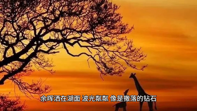 余晖洒在湖面波光粼粼像是撒落的钻石,闪烁着耀眼的光芒。