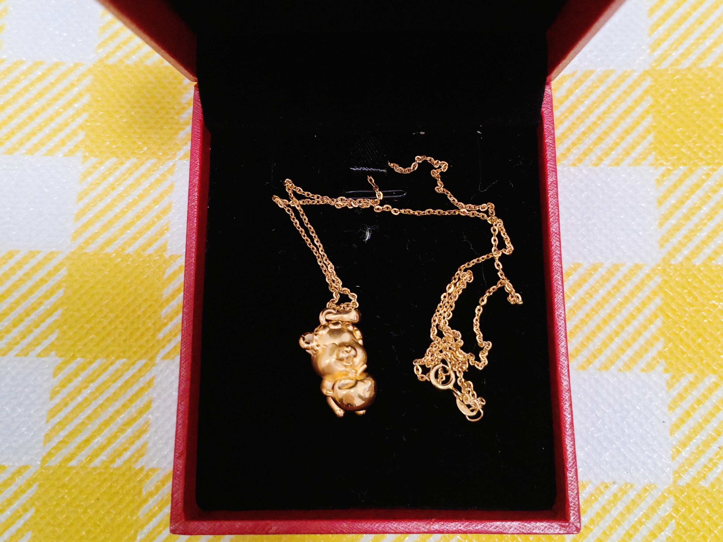 这个吊坠是足金999,不过项链却是AU916,纯度只有91.6%。