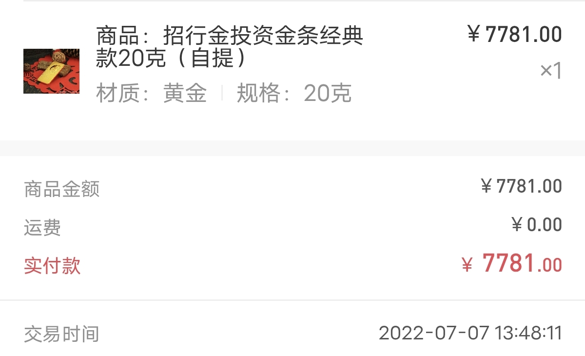 之前我还买过一个20g的小金条,当时买得可便宜了,可惜后来被我给低价卖了。