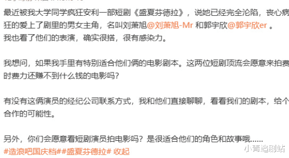 可谁能想到,无论是郭宇欣,还是刘萧旭,都是没有戏拍的科班生,转入短剧行列。