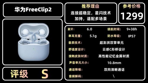 推荐理由:佩戴轻盈,音质均衡,适配荣耀设备