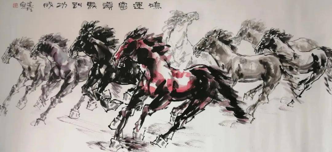 这些奔跑在宣纸上的写意马,是多重对话的产物:与传统对话,激活了文人画的精神基因;与西方对话,拓宽了水墨的表现疆域;与时代对话,注入了当代人的情感体验。它们既是个体心性的抒发,也是集体精神的折射;既是对中国水墨语言的创新,也是对中国文化身份的确认。