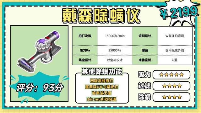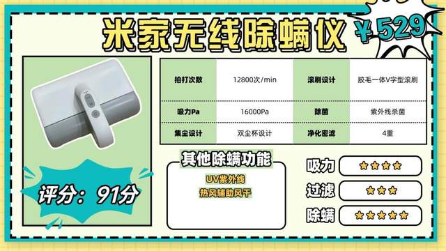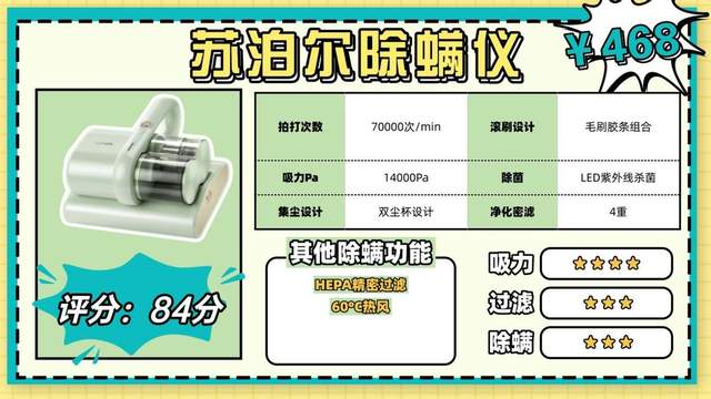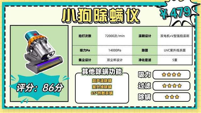 核心配置:公认清洁性能最稳定的除螨仪,用户口碑表现突出,中高端价位销量领先!