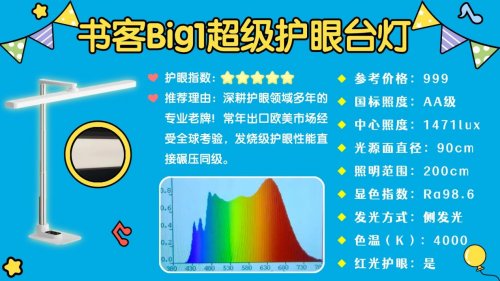 很多人以为只要灯够亮白就是护眼灯。其实这正是普通台灯最容易踩的坑。过强的蓝光、频闪看不见的闪烁、照射范围小又刺眼——这些看似“亮堂”的台灯,反而是视力的隐形杀手。相比之下书客Big1超级护眼台灯真正从光学原理出发,做到“医学养护眼”,从光学到结构设计,其凭借新一代SunArc三芯片全光谱灯珠搭配上RRT3.0红光硬核“养眼”黑技术,构建起专业级的护眼养眼性能,以源头级光谱工程为核心研发方向,从发光端重构SPD,通过精准调控光谱功率分布,在光线折射的过程中就对415~455nm有害蓝光的峰值进行抑制至0.6,在保证高亮度与真实色彩还原的同时大幅削弱蓝光危害,实现护眼性能的跨代跃迁。
