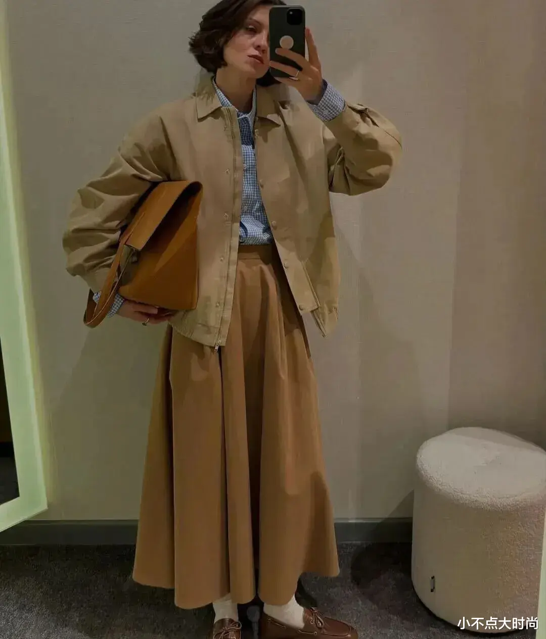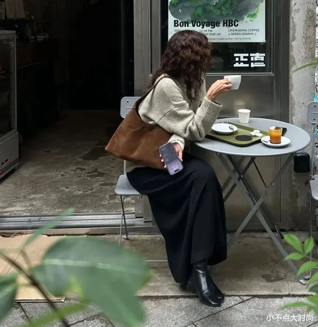 秋天喜欢氛围感穿搭的矮个子姐妹,尽可选择棕色系的高腰长裙,温和而经典的色调,搭配同色系的外套,一整个秋冬的氛围感,复古文艺,气质十足。▼