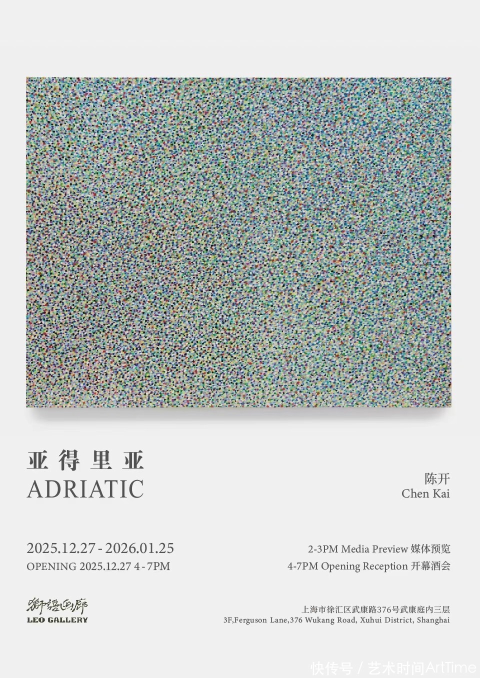 狮語画廊荣幸呈现艺术家陈开的全新个展《亚得里亚》。展览集中展出创作于2023至2025年间的“亚得里亚”系列,汇聚数件大尺幅绘画与一组名为《间隙》的小幅油画作品。陈开运用重复而专注的点彩,将一段关于海岸光线与空气的记忆,编织成一系列在静默中生长、蕴含呼吸的视觉织物,标志着他在色彩探索、绘画连续性以及抽象情感维度上的显著推进。
