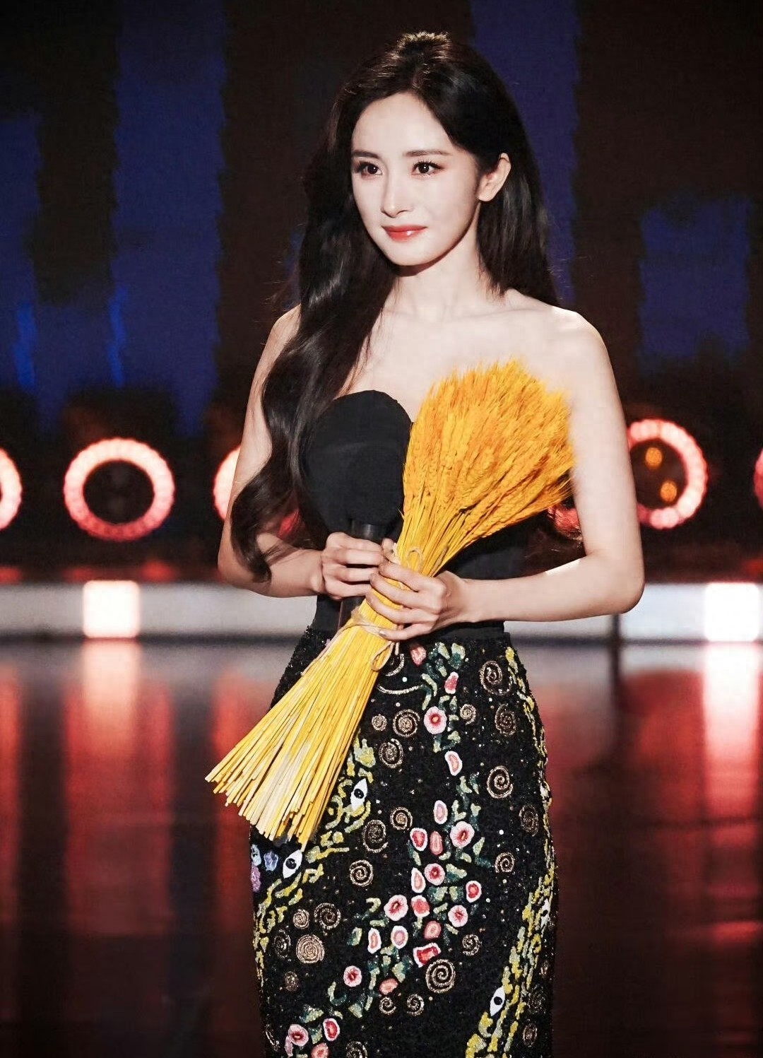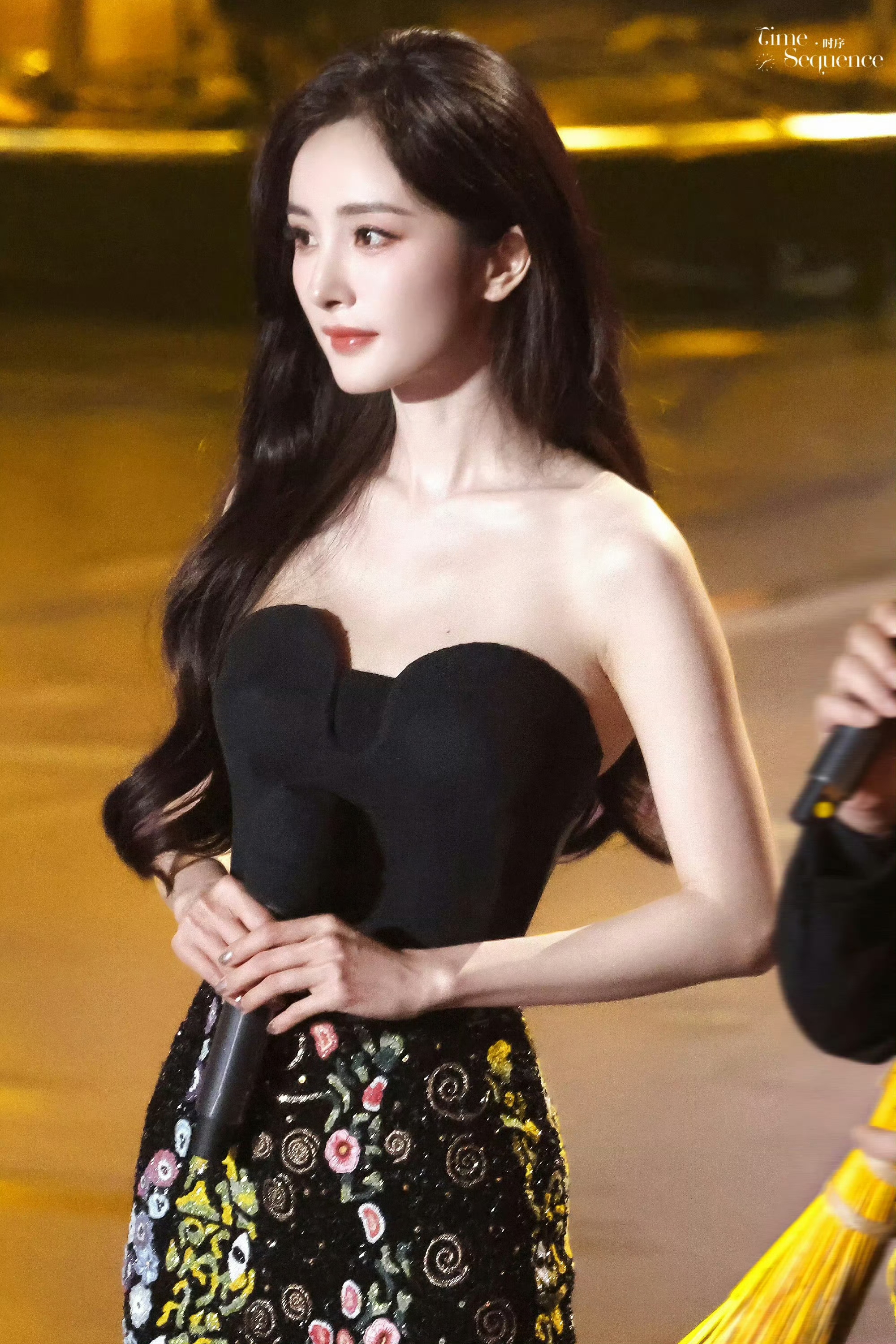杨幂出席2025中国广电视听精品之夜,身着黑色抹胸亮片刺绣长裙亮相,造型华丽优雅,气场全开。