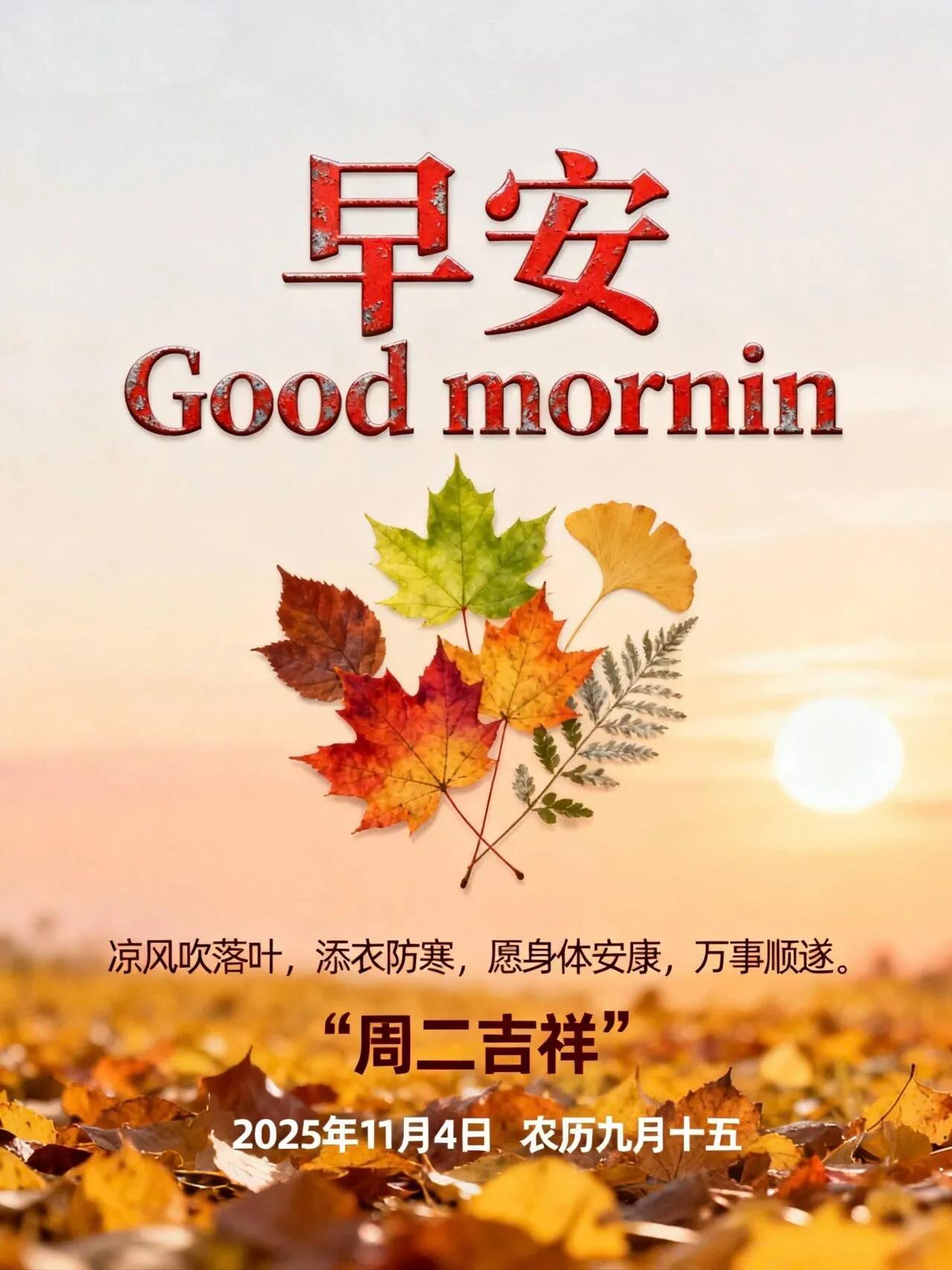 深秋的晨光里,风也轻柔,云也舒展。美好的一天,从问候开始,你安好,我无恙,岁岁都安康。无论昨天、今天还是明天,愿我们始终拥有温暖而明亮的每一天!