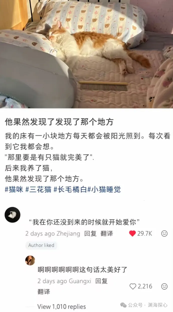 反馈:猫咪,是我特别喜欢的小动物。每次看到小猫咪我内心都会萌化了,因为啥,太可爱了!!!!!之前看到一个文案很有意境,我一会儿附上图片。我和喜欢给人讲课,喜欢把自己内心的想法表达出来,对方听到如果感觉很开心,我会比他们还要开心~或许这个就是您所说的:“男生抱着猫,通常意味着内心细腻、温柔,甚至有一点母性的关怀欲,也就是愿意照顾人”吧!我目前还是单身,亲密关系的话,我感觉还是比较向往的,这个我比较相信缘分,有缘分的话,就一定会相见,就好比老师您给我看头像一样,有些东西可遇不可求~
