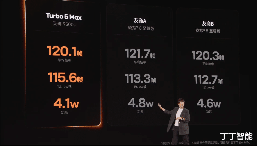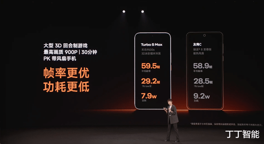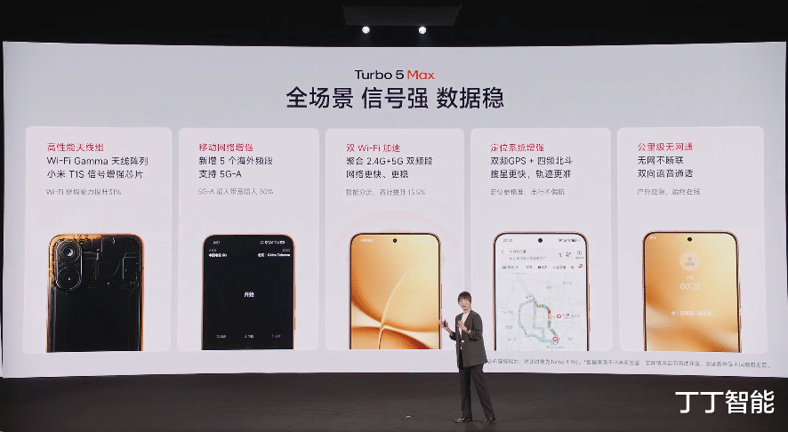 核心性能是 Turbo 5 Max 的重头戏,这次终于不用阉割版芯片,直接上了天玑 9500s 正儿八经的旗舰级芯片,缓存、GPU 规模和外围特性都比中端芯片强太多;安兔兔跑分突破 360 万,在狂暴引擎加持下,卢伟冰直言要 “AOE 2.5K 主流机型“。