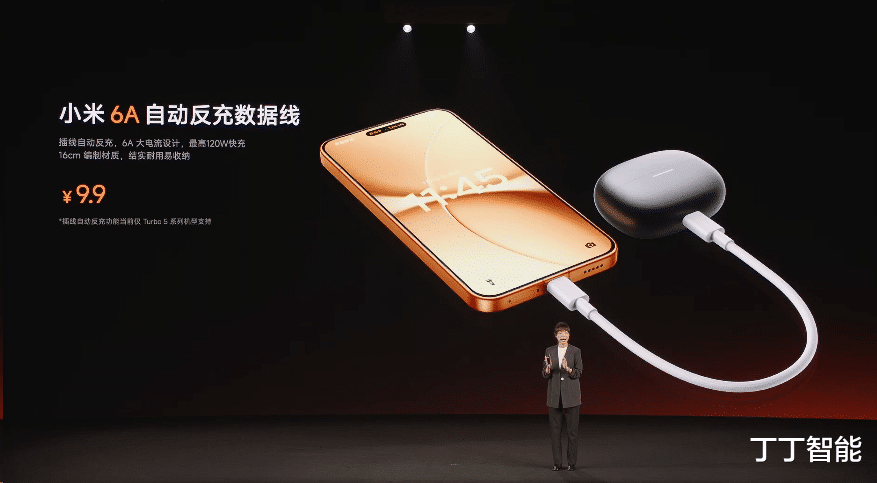 官方还推出了 9.9 元的小米 6A 自动反充数据线,能自动触发反向充电,不用手动开关,出门能给耳机、手表充电,实用性拉满。