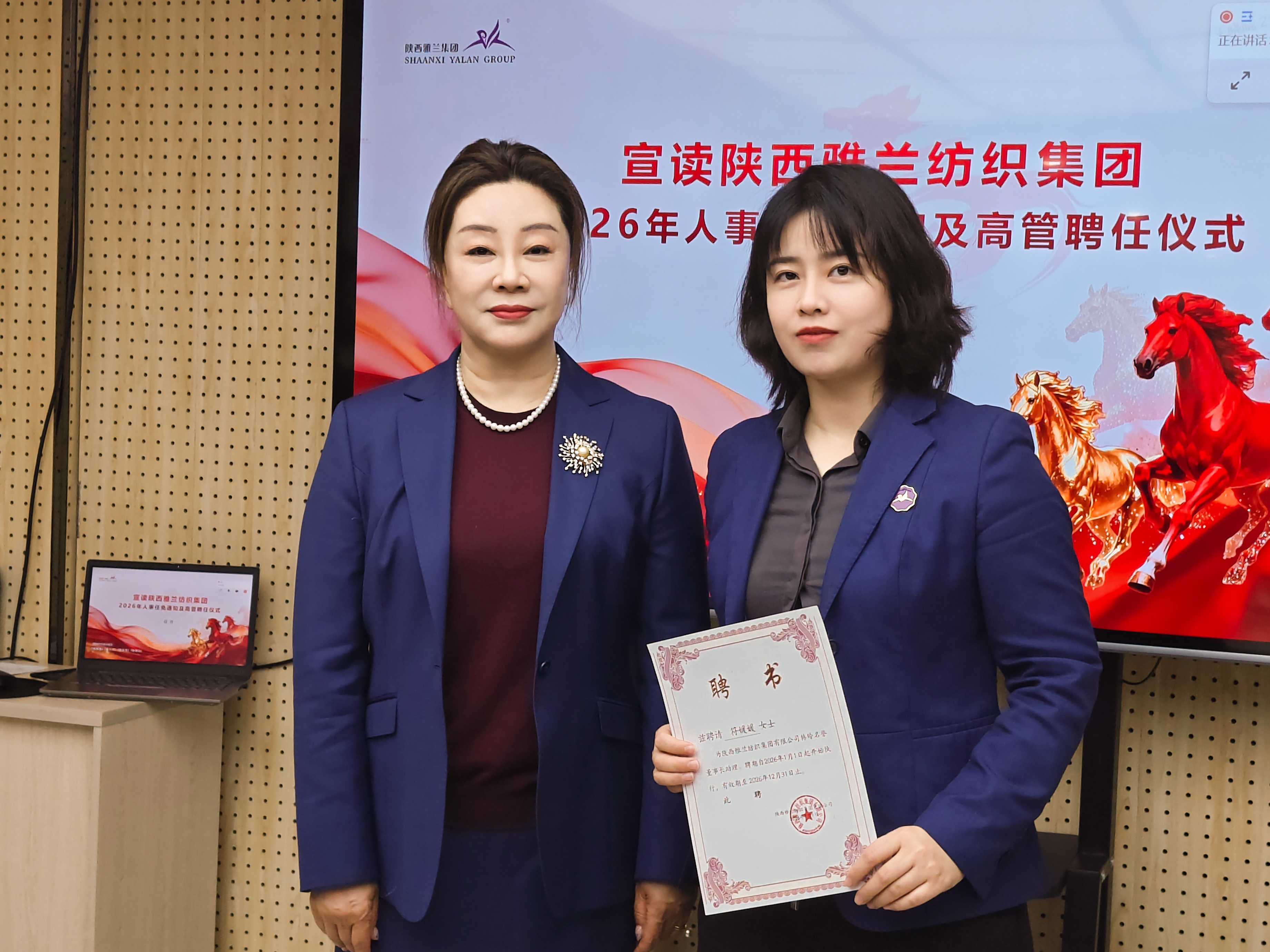 随后,任勇董事长宣读了《陕西雅兰纺织集团及各经营体2025年终分红结果》,屈娇副总裁公布了《陕西雅兰纺织集团2025年度表彰决定》,对集团全年发展成果进行落地兑现,激励全体员工见贤思齐,以实干携手共铸未来新辉煌。