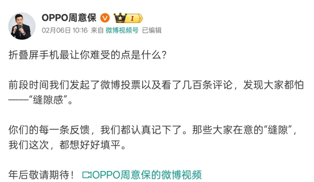 OPPO Find N6将在3-4月发布,独占的技术继续主打“无折痕”,传言也是苹果主要学习的技术。
