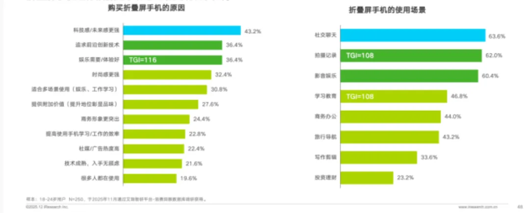 这些数据充分说明,折叠屏手机依旧是高知高收入人群体验前沿科技的小众产品,使用内容也与直板手机区别不大。