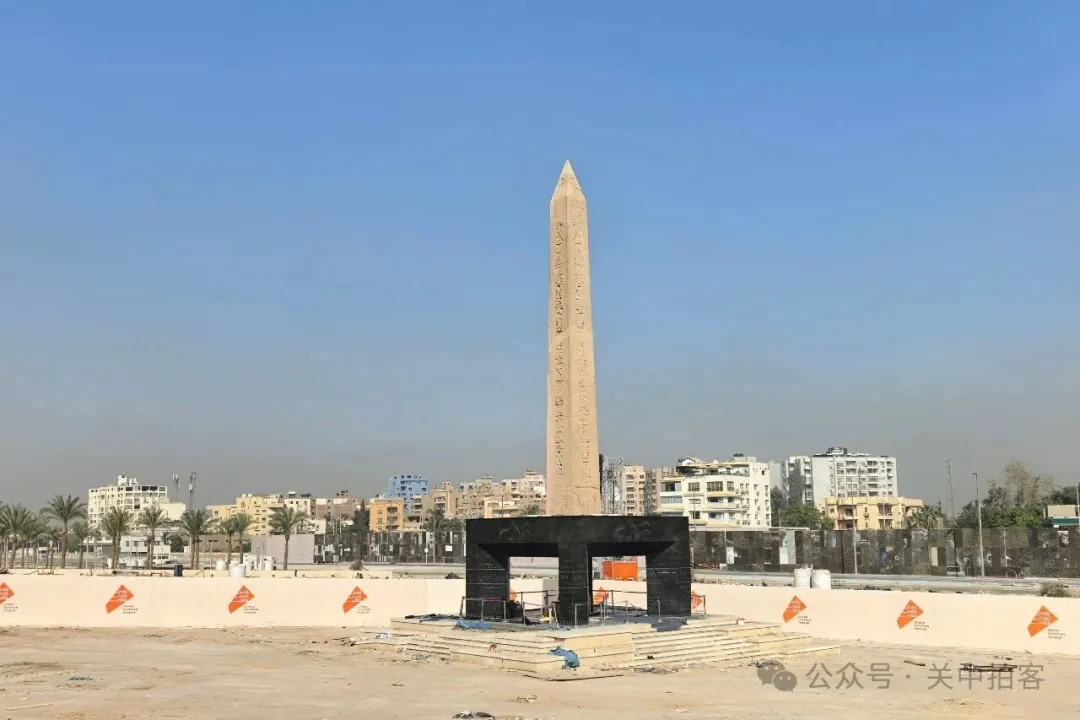 经过拥挤的检票口,终进入博物馆园区内,面前的广场被围栏遮挡起来,只露出一座高耸的方尖碑顶端。透过缝隙,朝内望去,广场还在修缮之中。11月1日晚上,在这里举行了盛大的开幕式,埃及总统塞西和多个国家、地区及国际组织代表团参加典礼。