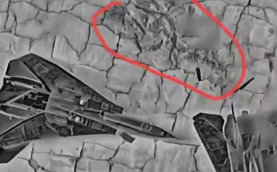 可细看就露馅了——爆炸后没有金属碎片,没有燃油起火,就一个浅浅的弹坑,那“战机”轮廓还好好躺在地上。