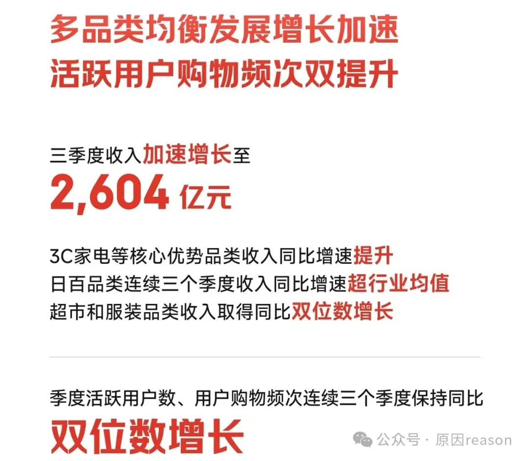 京东集团首席执行官许冉表示:“三季度,随着整体消费者信心回暖,京东收入增长加速,利润水平保持健康。”