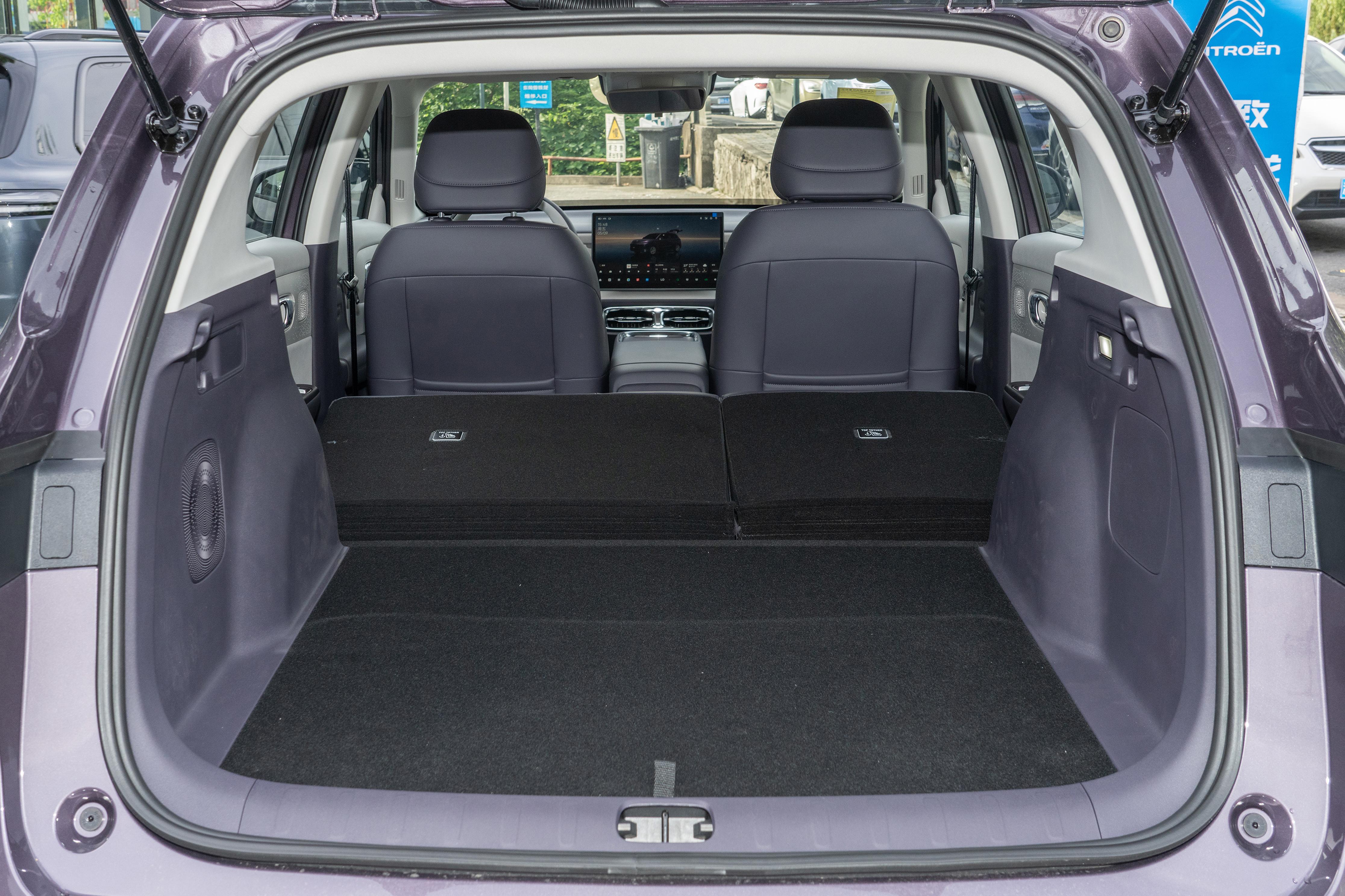 后备厢的装载能力也很有看点。在常规状态下,420升的容积足以放下两个28寸的行李箱外加一辆婴儿车。如果将后排座椅完全放倒,容积可以扩展到1415升,无论是露营用的帐篷、折叠桌椅,还是一些大件行李,都能轻松装下,甚至可以临时充当一个移动办公台。