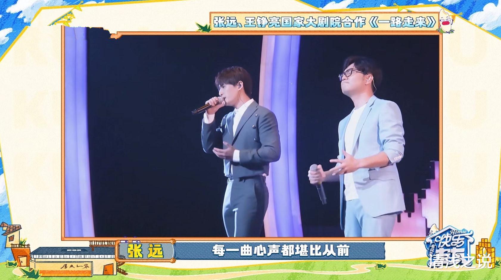 2019年时,张远、王铮亮曾一起在国家大剧院合唱《一路走来》。那时候的张远还没翻红,活很少,王铮亮虽然相比在央视春晚上唱《时间都去哪儿》那会儿是有点过气了,可活还是比较多的,至少比张远、陆虎他们要多不少活。要是没有王铮亮,张远出现在国家大剧院唱主旋律歌曲的概率着实不是很大,所以说他那句托王铮亮福的话真不是恭维。回忆起在国家大剧院唱《一路走来》,张远说那时候去国家大剧院可兴奋了,国家大剧院多大的名呀。