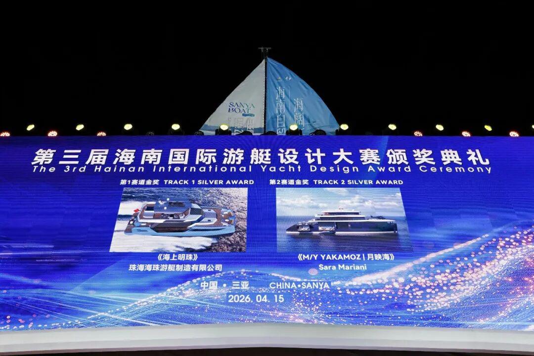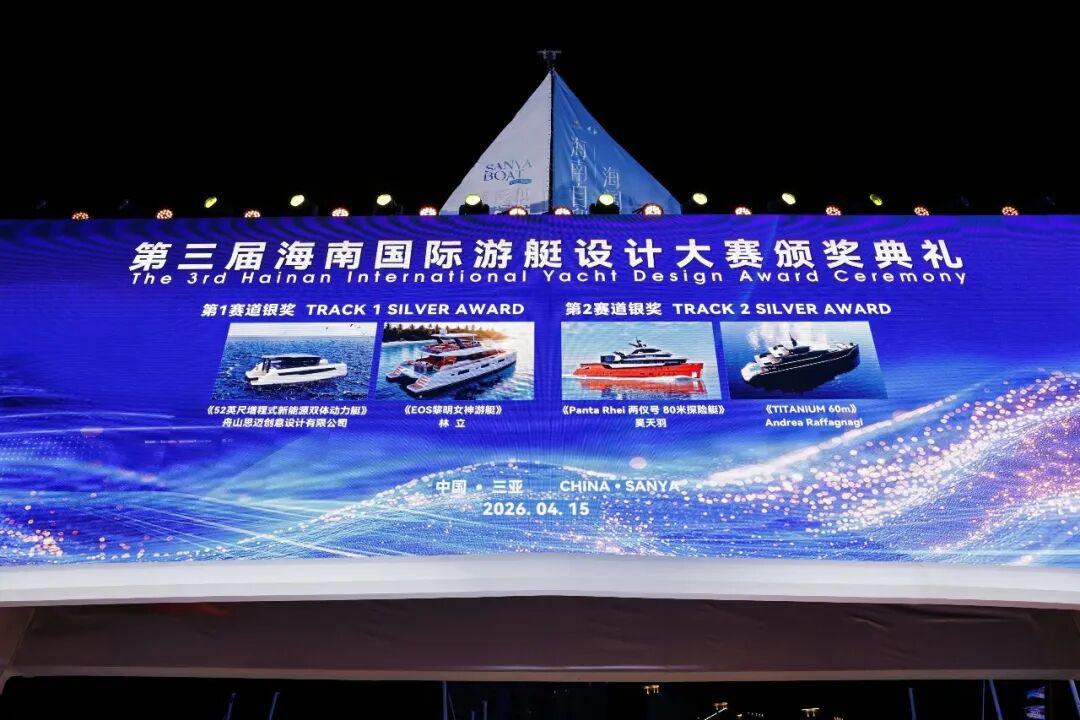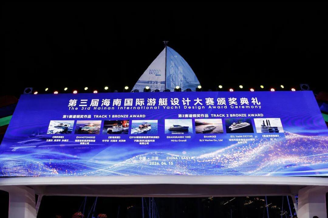 碧海扬帆,设计领航。2026年4月15日晚,三亚国际游艇中心灯火璀璨,第六届中国国际消费品博览会三亚国际游艇分展区开幕式在此隆重举行,作为当晚开幕式的核心环节之一,第三届海南国际游艇设计大赛颁奖典礼同步盛大举办。来自国内外游艇行业的权威专家、获奖设计师代表及产业界领袖齐聚一堂,共同见证这一彰显中国游艇设计创新力量与国际视野的荣耀时刻,为全球游艇产业的绿色化、智能化与人文融合发展注入了强劲的“海南动能”。