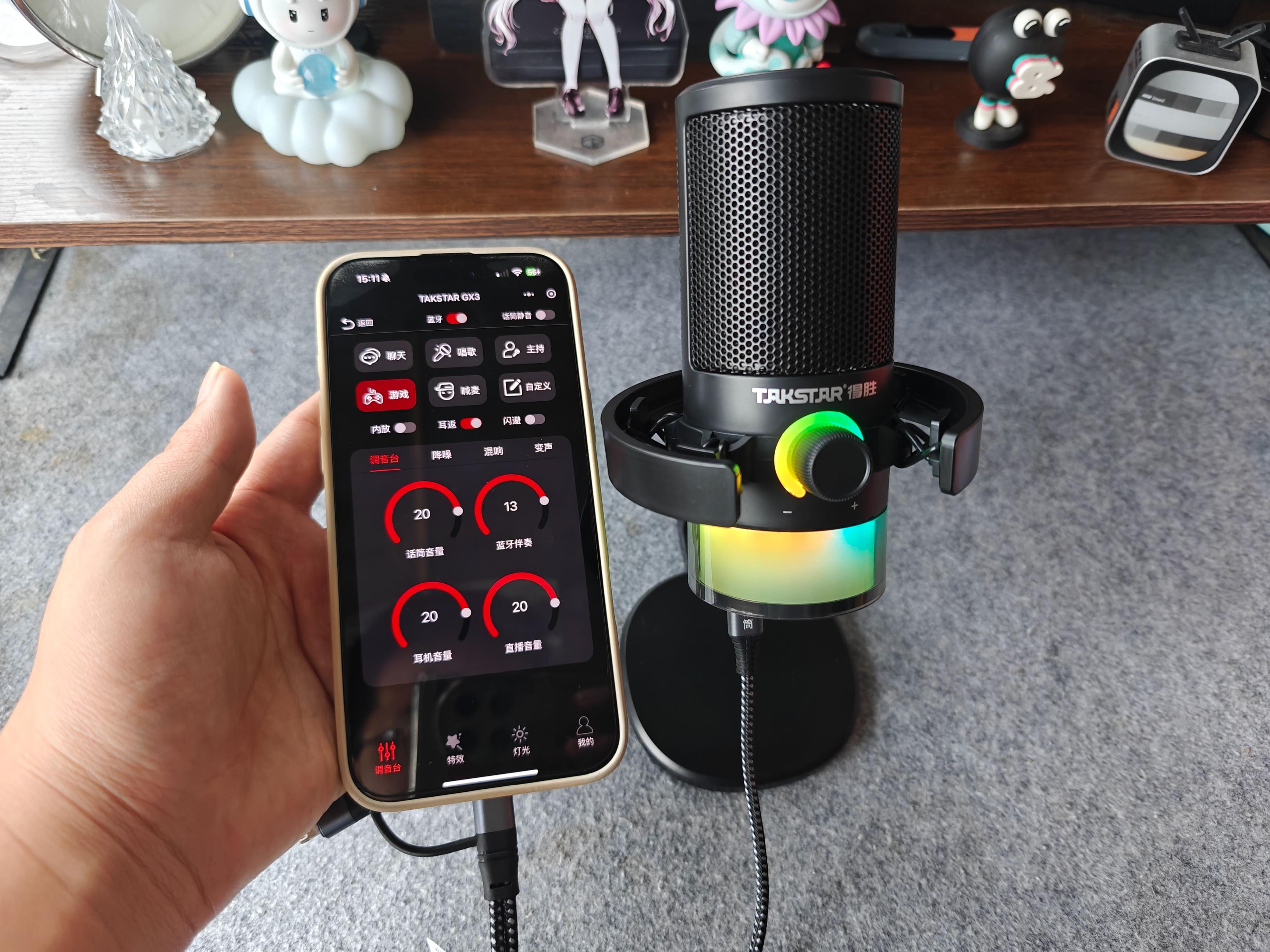 得胜GX3还具有9种灯光色彩可选,常亮、呼吸灯效模式随心切换。我可以通过“得胜智+”软件的灯光开关或者长按麦克风底部灯光按钮来关闭灯光。在直播的时候,我可以根据自己的喜好和直播氛围来选择不同的灯光效果,让直播更加个性化、更有氛围感。