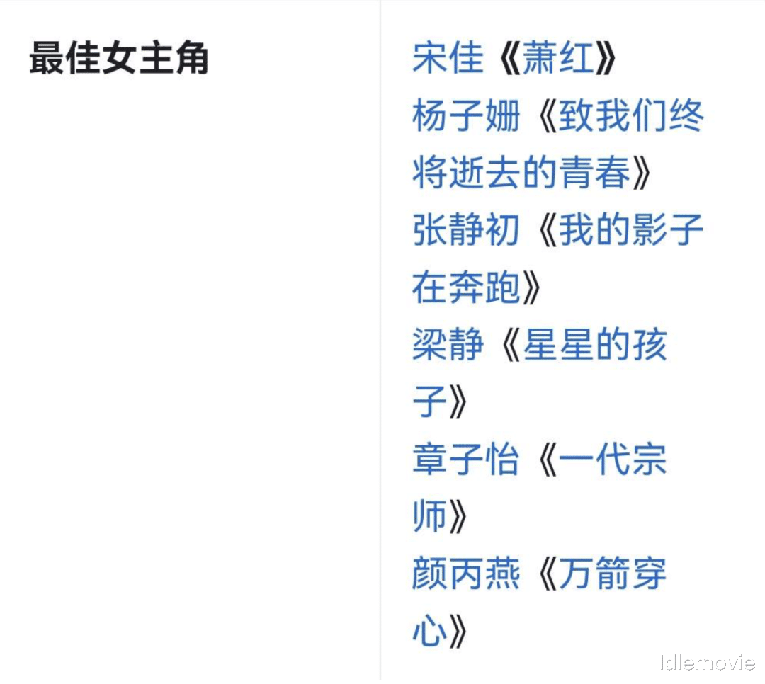 宋佳一封靠《萧红》打败了《一代宗师》章子怡,《万箭穿心》颜丙燕,《萧红》是很套路的文青片,对许鞍华的拙劣模仿,宋佳的表演只能说行活。