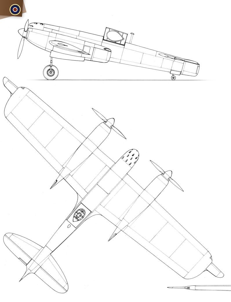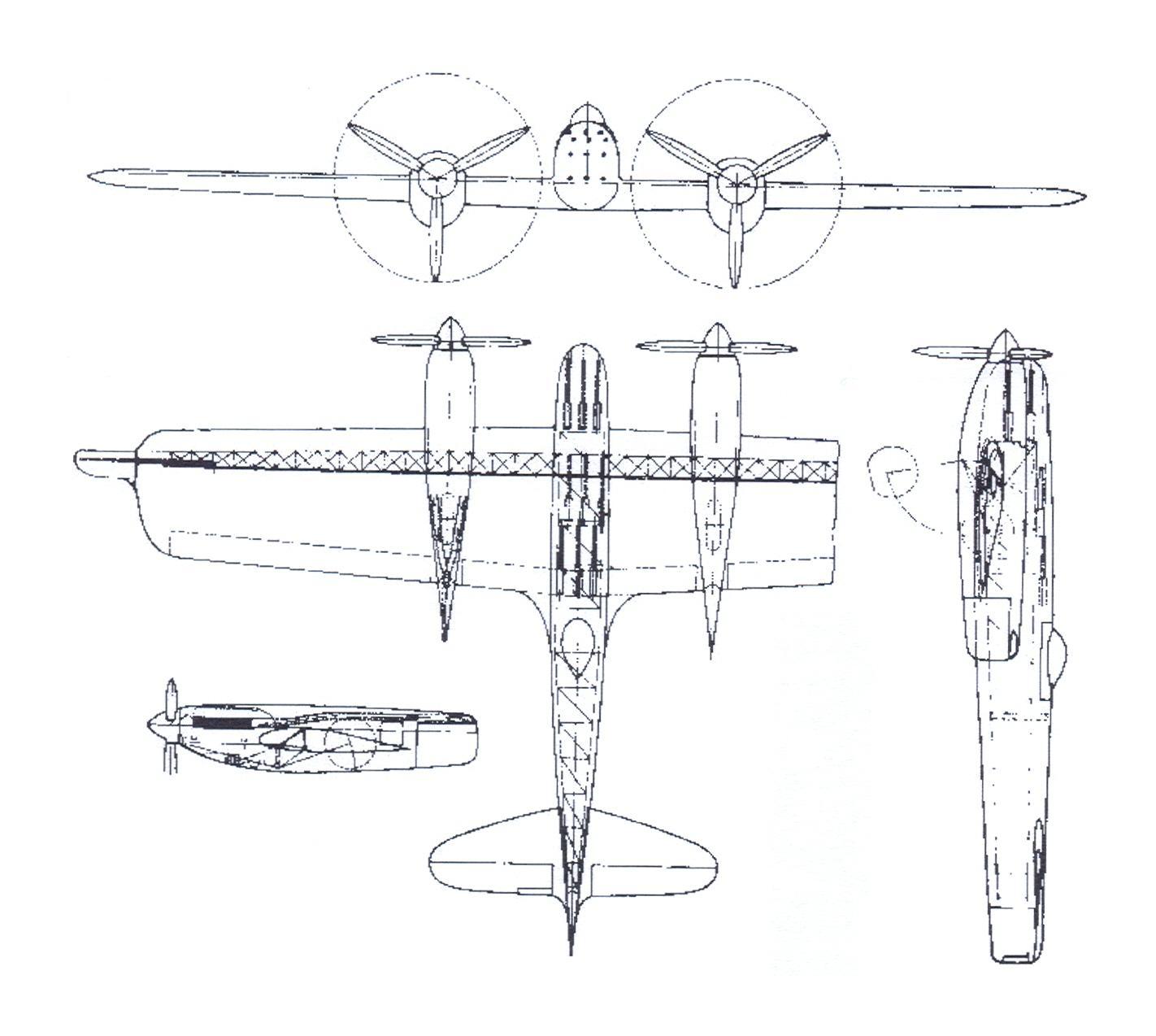 这架双引擎战斗机翼展 15.24 米,长度 10.97 米,重量 3855 千克。采用了早期 MB 2 机架的无尾布局。在战斗机设计中,发动机舱的尾缘提供了额外的垂直控制面。