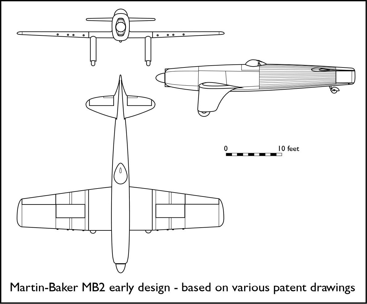 建造过程同样缓慢, 1938 年 7 月 MB.2 终于完成。刷上了编号 M-B-1,被送往皇家空军哈维尔进行试飞。贝克上尉于 8 月 2 日驾机首飞。尽管贝克达到了每小时515公里的水平速度,但发现模型测试结果经不起放大,飞机的方向控制很差,马丁被迫将方向舵放大高出机身。